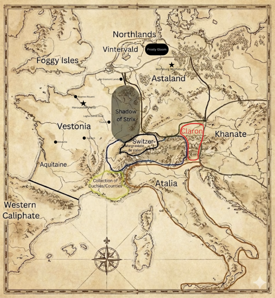 - Barony of Valff – County Gramont, north east of Vestonia on the border of Astland